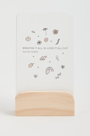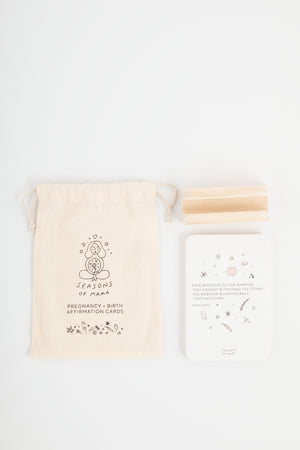 These Positive Pregnancy, Labour + Birth Affirmation Cards have been lovingly created by Jen as a Midwife, Childbirth Educator and Mum of two beautiful babes! The set includes 29 cards, each with their own hand-drawn illustrations, packaged in a branded calico bag with a wooden stand.